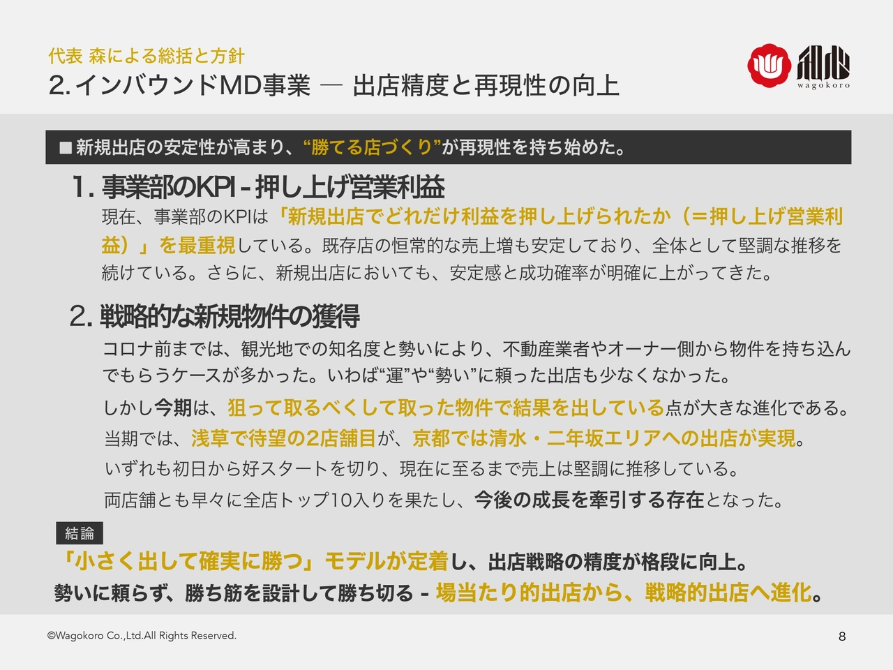 インバウンドMD事業では、戦略的な出店が可能となり、出店精度および再現性の大幅な向上が確認されました。