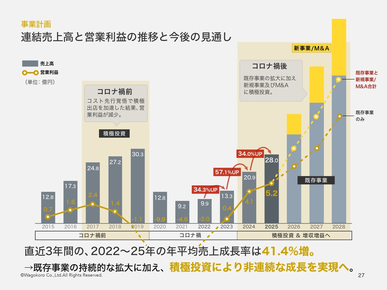 今後は既存事業の拡大に加え、新規事業およびM&Aへの積極投資を通じて非連続的な成長の実現を目指します。