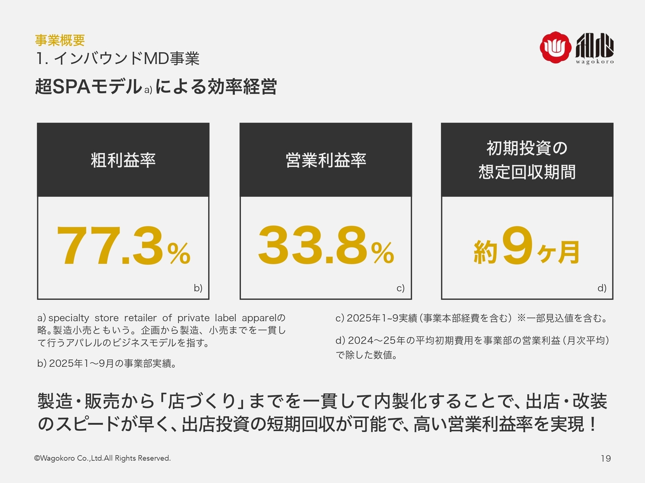 製造・販売から「店づくり」までを一貫して内製化することで、出店や改装のスピードが早く、出店投資の短期回収を可能にしています。この結果、高い営業利益率を実現しています。