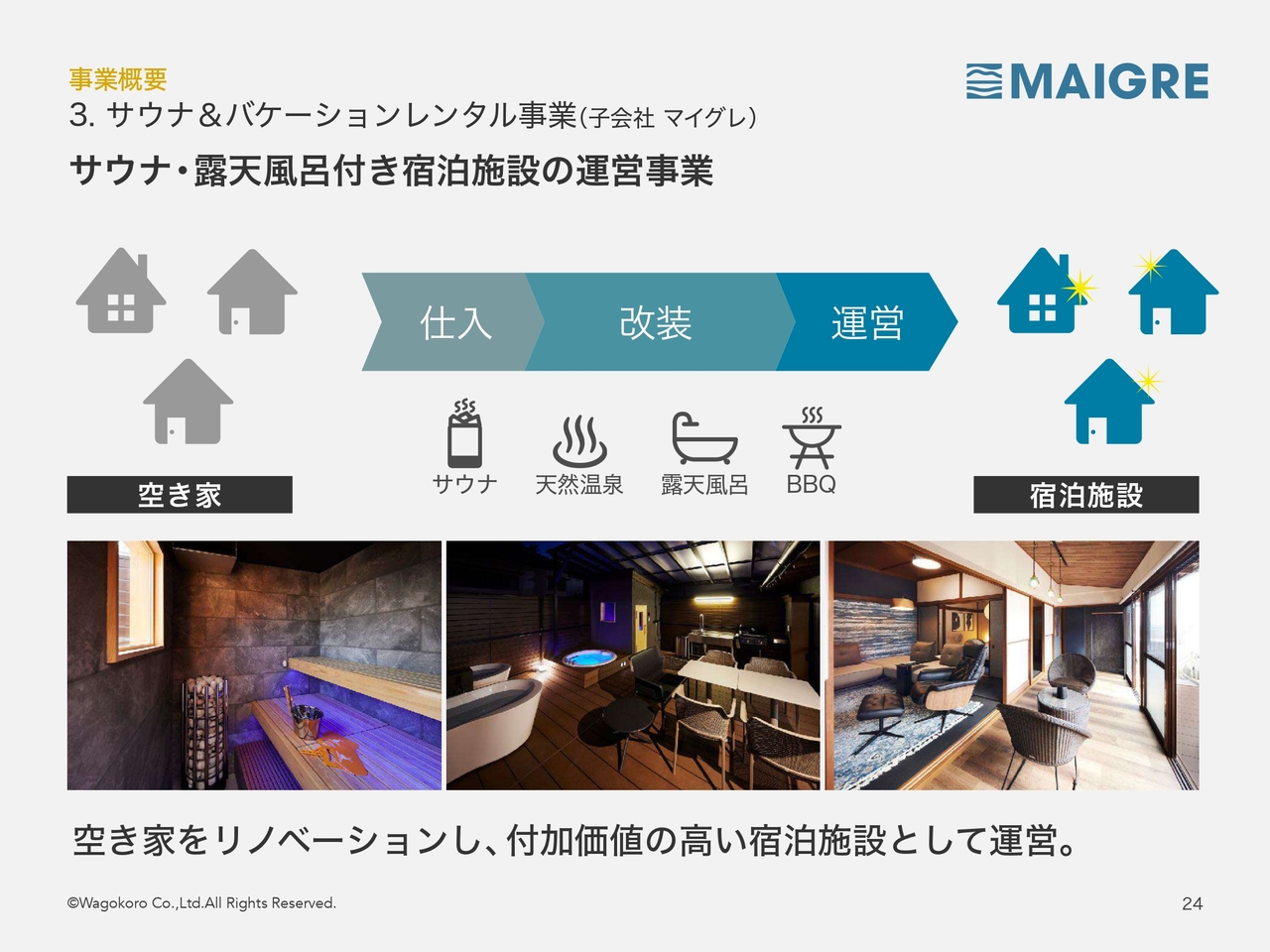 サウナ&バケーションレンタル事業として展開するサウナ・露天風呂付き宿泊施設の運営についてご説明します。