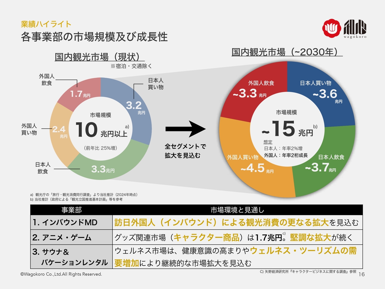 サウナ&バケーションレンタル事業では、ウェルネス市場が健康意識の高まりにより需要が増加し、継続的な市場拡大が期待されています。