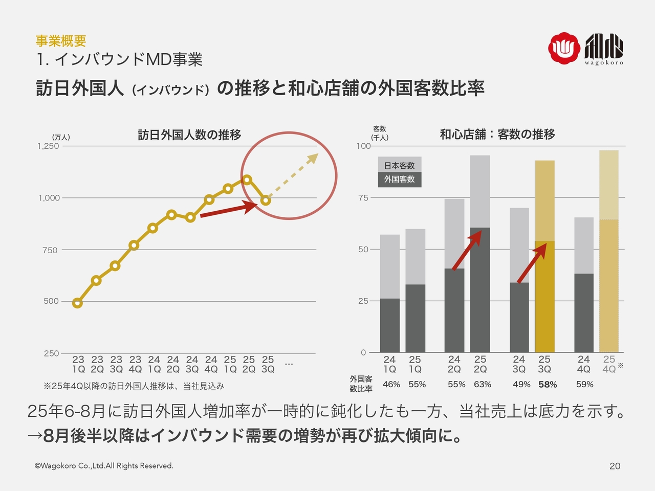 2025年の6月から8月には訪日外国人の増加率が一時的に鈍化しましたが、当社の売上は堅調に推移し、減速局面でも底力を発揮できました。8月後半以降にはインバウンド需要が再び拡大傾向へ転じています。