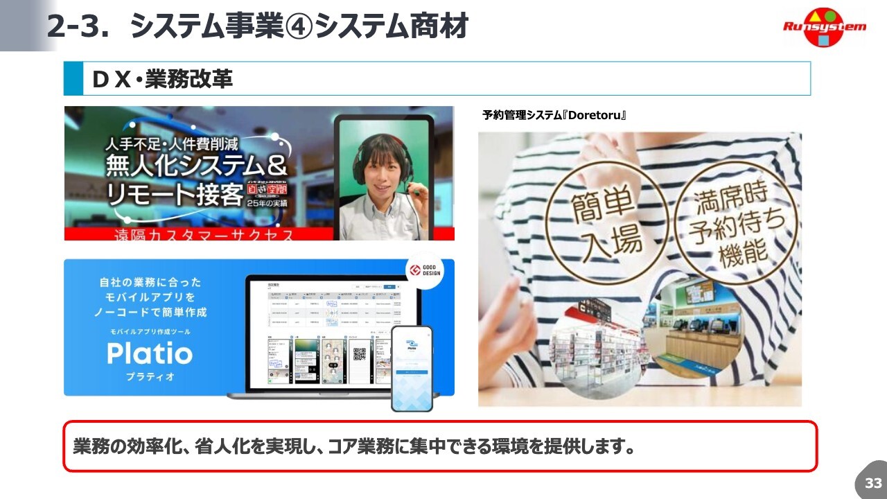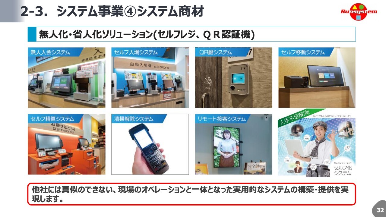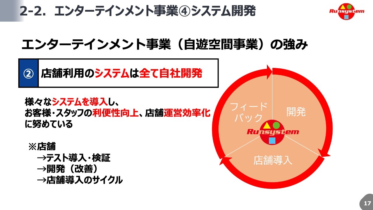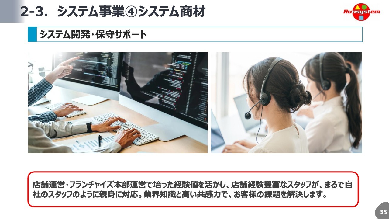 1つ目、当社はリアル店舗運営を活用したシステムの開発や改善を基盤に、システム事業を強化していきます。