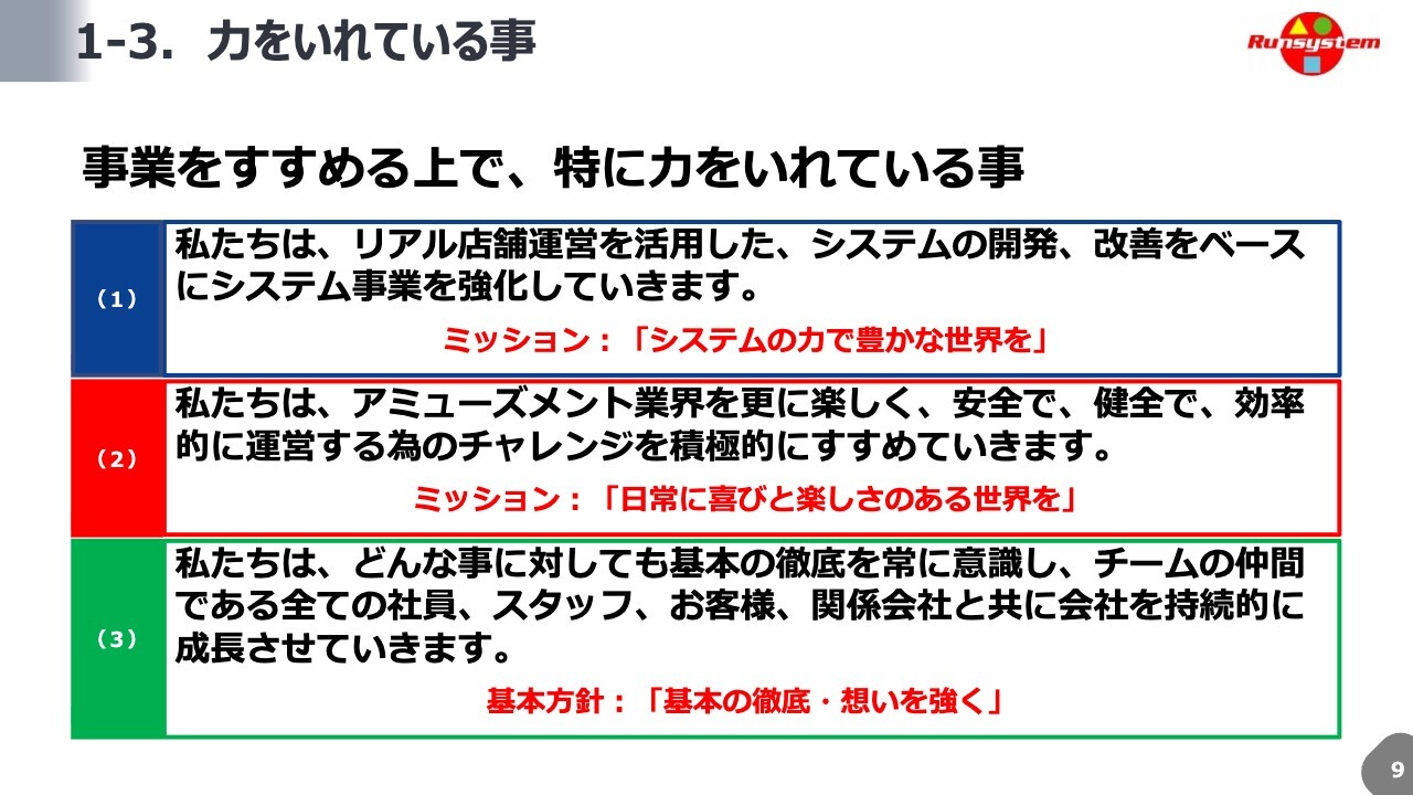 2つ目、当社はアミューズメント業界をさらに楽しく、安全で、健全かつ効率的に運営するためのチャレンジを積極的に進めていきます。