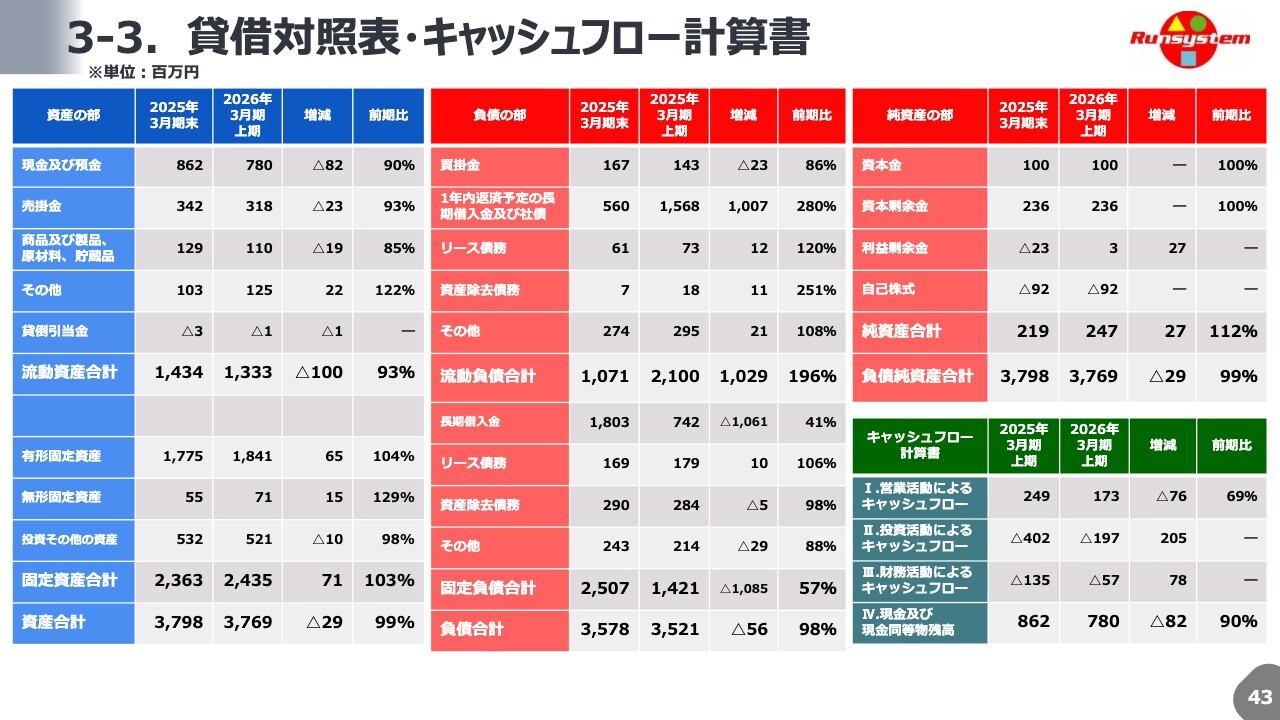 貸借対照表・キャッシュフロー計算書についてはスライド43ページをご確認ください。