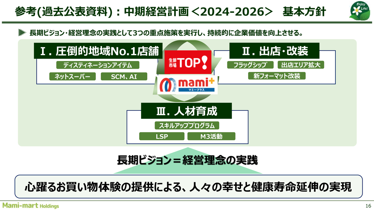 質問者:今後、出店を加速させるにあたり、注目しているエリアや、「マミーマート」「生鮮市場TOP!」「マミープラス」から、どのように選んでいくのかを教えてください。