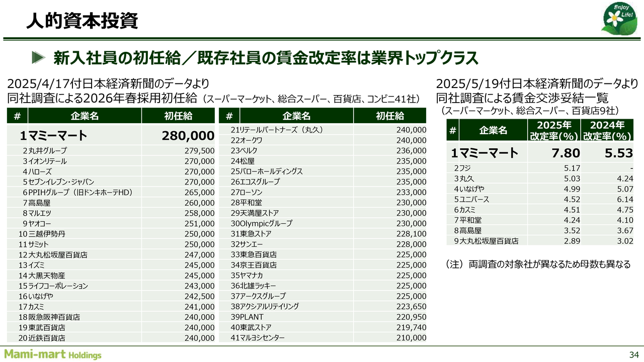 賃上げ交渉の改定率について、2024年は5.53パーセント、2025年は7.8パーセントと、業界内でも高い水準で賃上げを行っています。待遇は非常に重要ですので、こうした取り組みを含めて可能な限り進めていきたいと考えています。