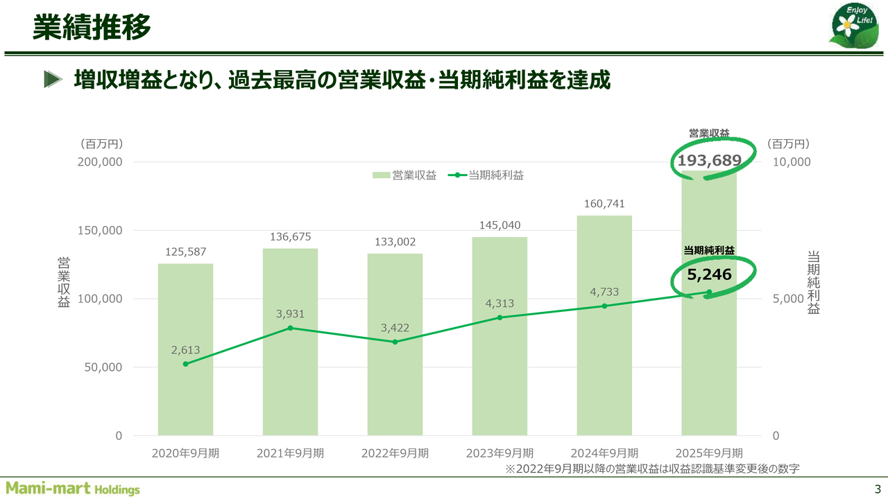 質問者:粗利益率について、下落傾向にあるとのご説明がありましたが、新店舗や新業態が増加する中で、そうしたトレンドになると理解しています。例えば、3年前に出店された「生鮮市場TOP!」の既存店の粗利益率は維持されているのか、上昇しているのか、あるいは既存店でも同様に下降傾向となっているのかについて教えてください。