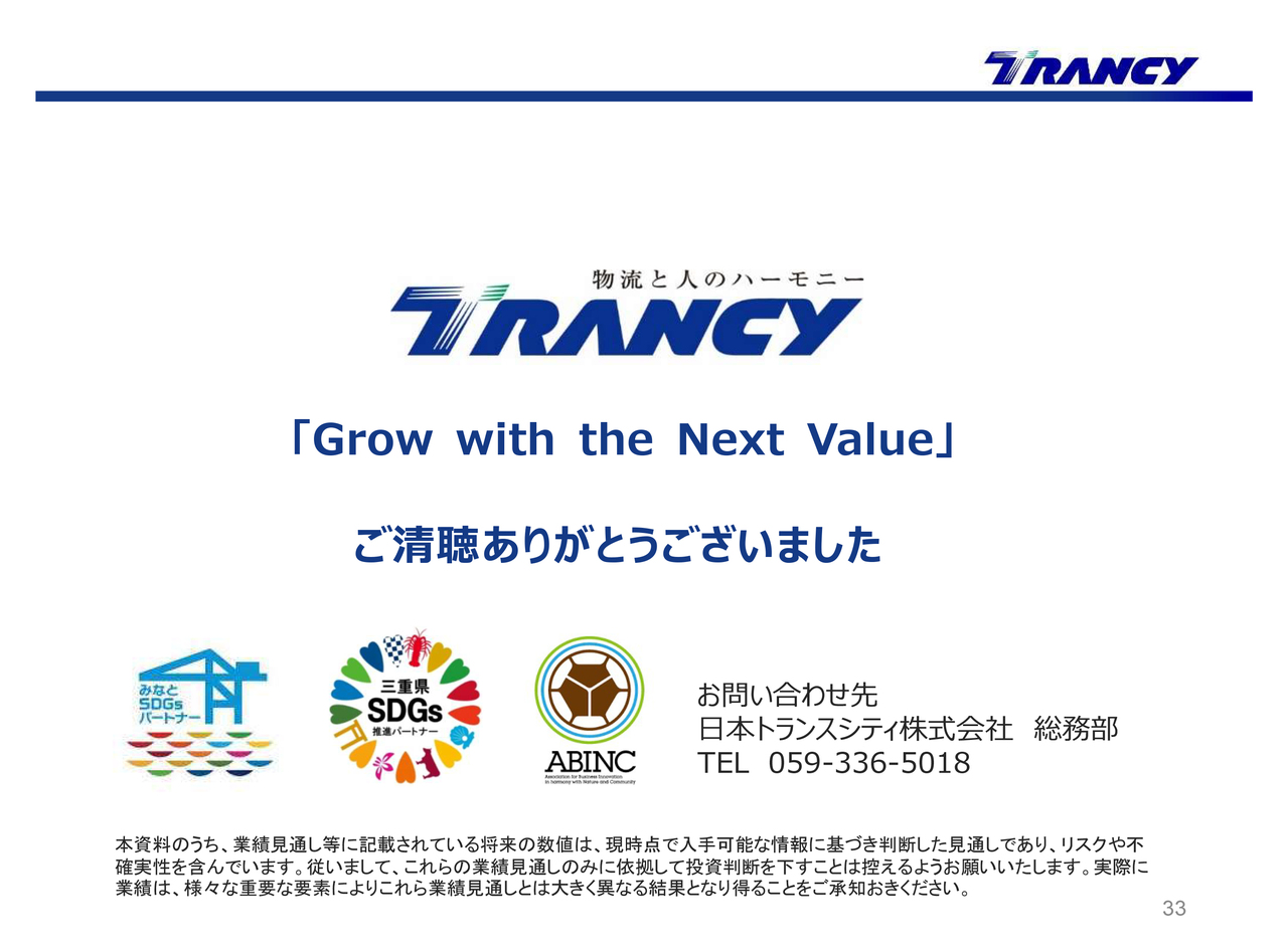 当社は社会インフラを担うグローバル総合物流企業として、中期経営計画で掲げたスローガン「Grow with the Next Value」を胸に、下期もさまざまな施策を着実に実行し、来期から始まる新中期経営計画へつなげ、さらなる躍進への礎としていきます。