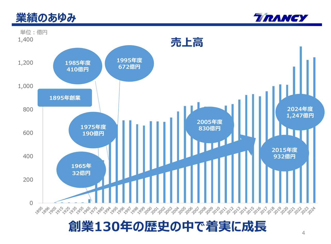 決算ハイライトについてご説明します。当社は2025年7月に130周年を迎えましたが、その長い歴史の中で着実に成長を遂げています。さまざまな外的要因の影響を受けながらも、時代やニーズの変化に対して積極的に挑戦し、事業領域や活動エリアを拡充してきました。