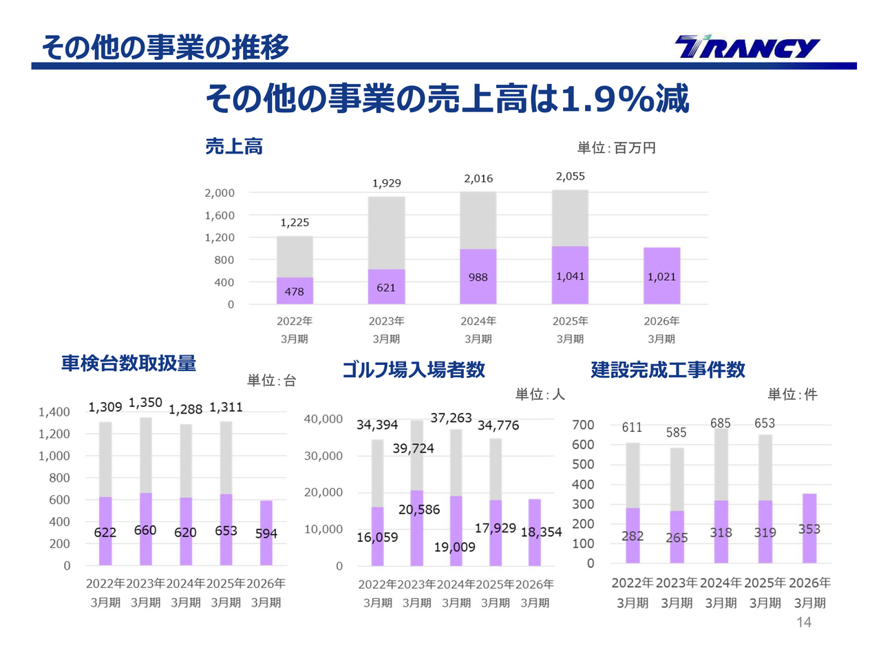その他の事業の推移です。自動車整備業、ゴルフ場事業、建設事業についてはスライドに記載のとおりです。