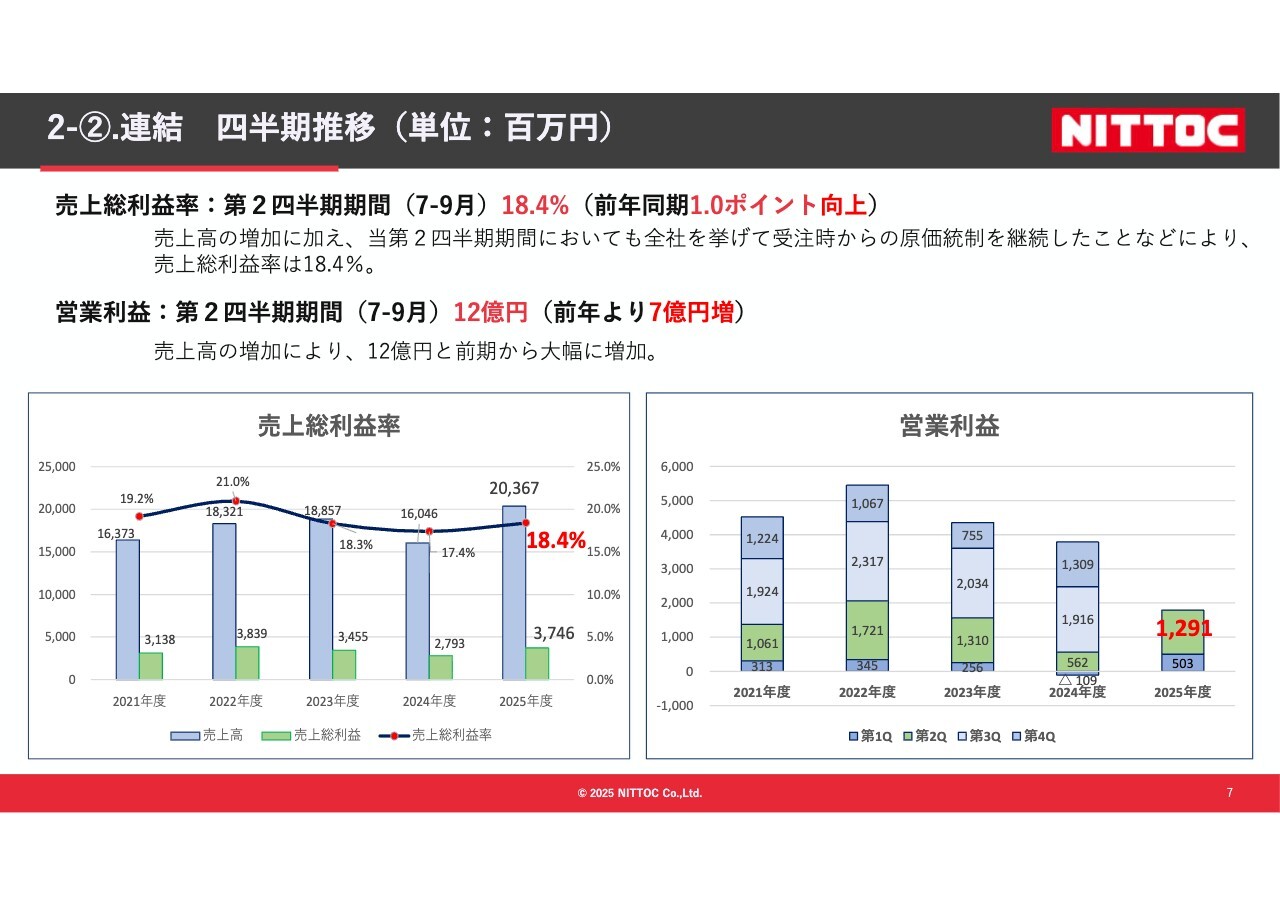 結果として、第2四半期(7-9月期)の営業利益は12億9,100万円を達成しました。