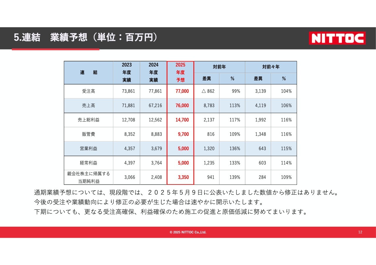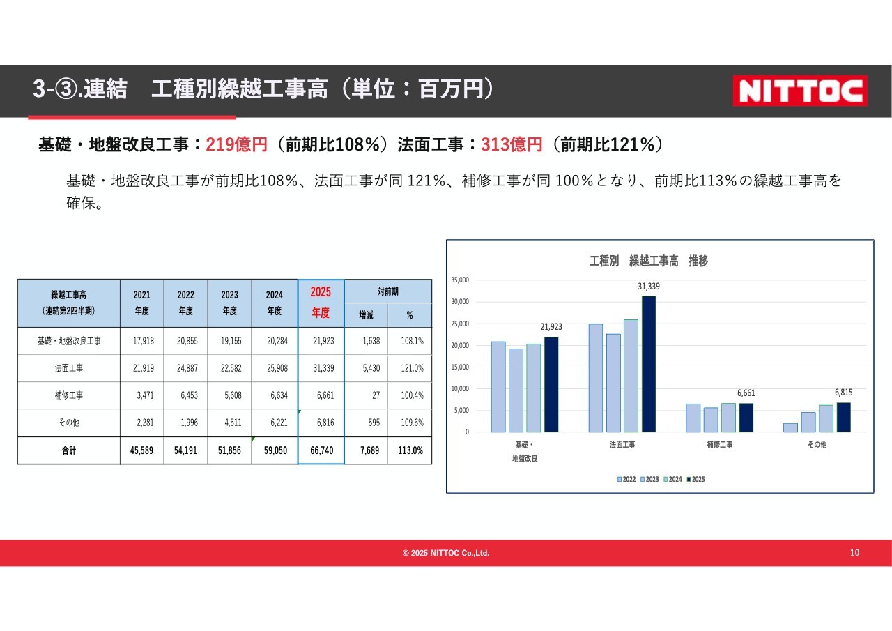 この反省を踏まえ、2024年度の後半からは、2025年度上期、特に第1四半期の施工に結びつく受注確保に注力し、今年度をスタートすることができました。