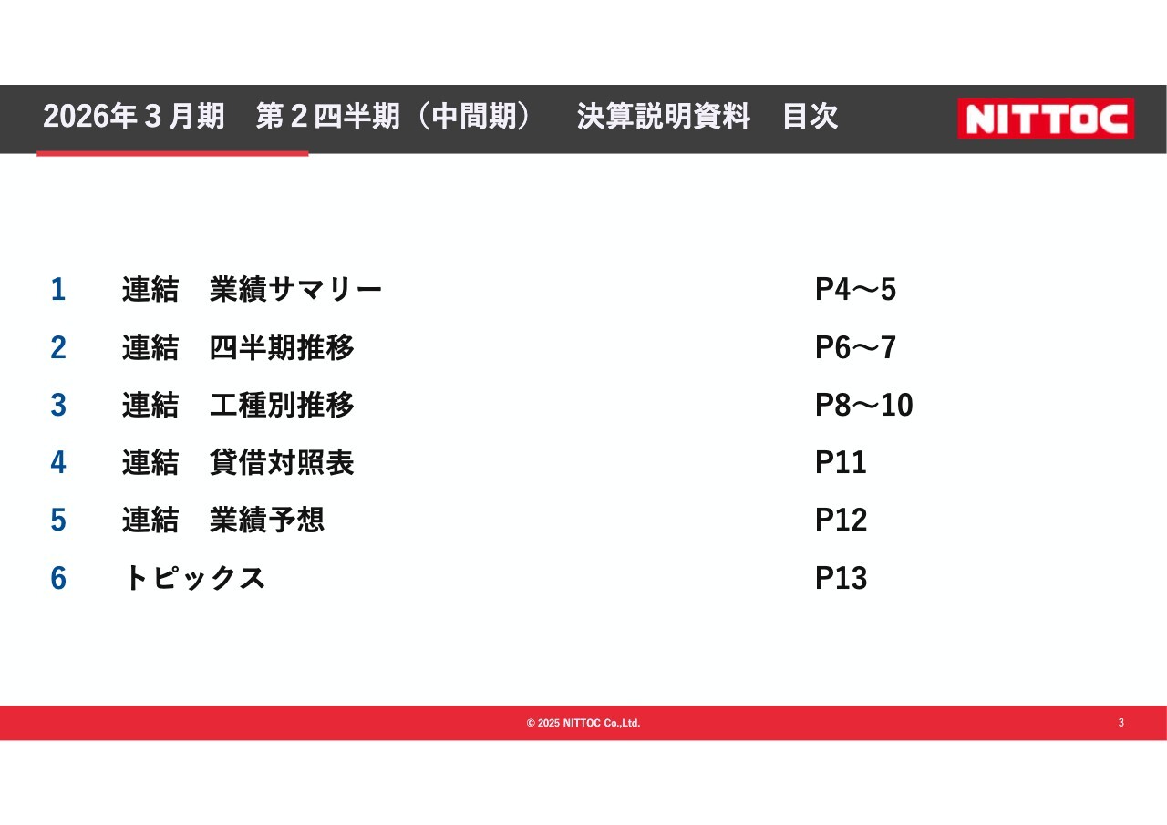 2026年3月期 第2四半期(中間期) 決算説明資料 目次