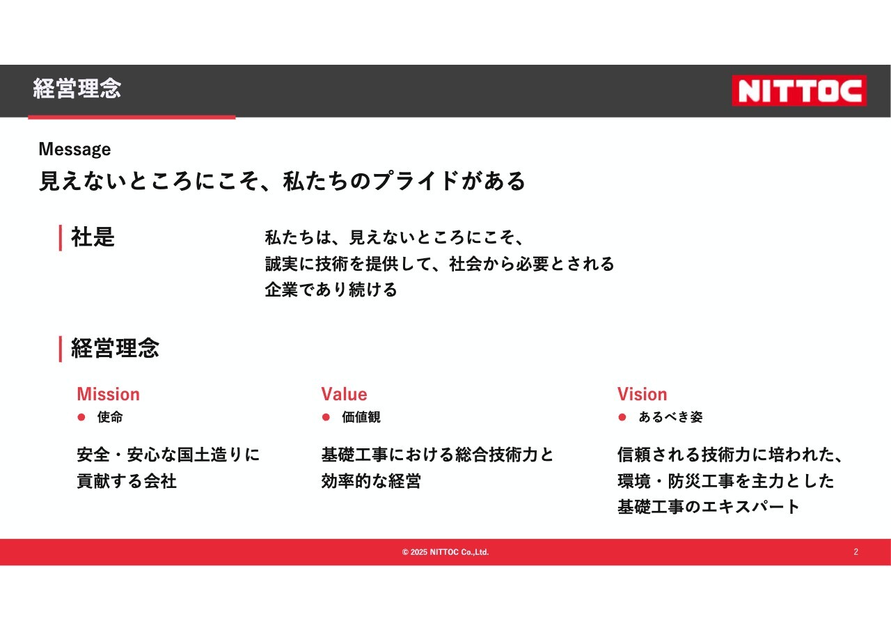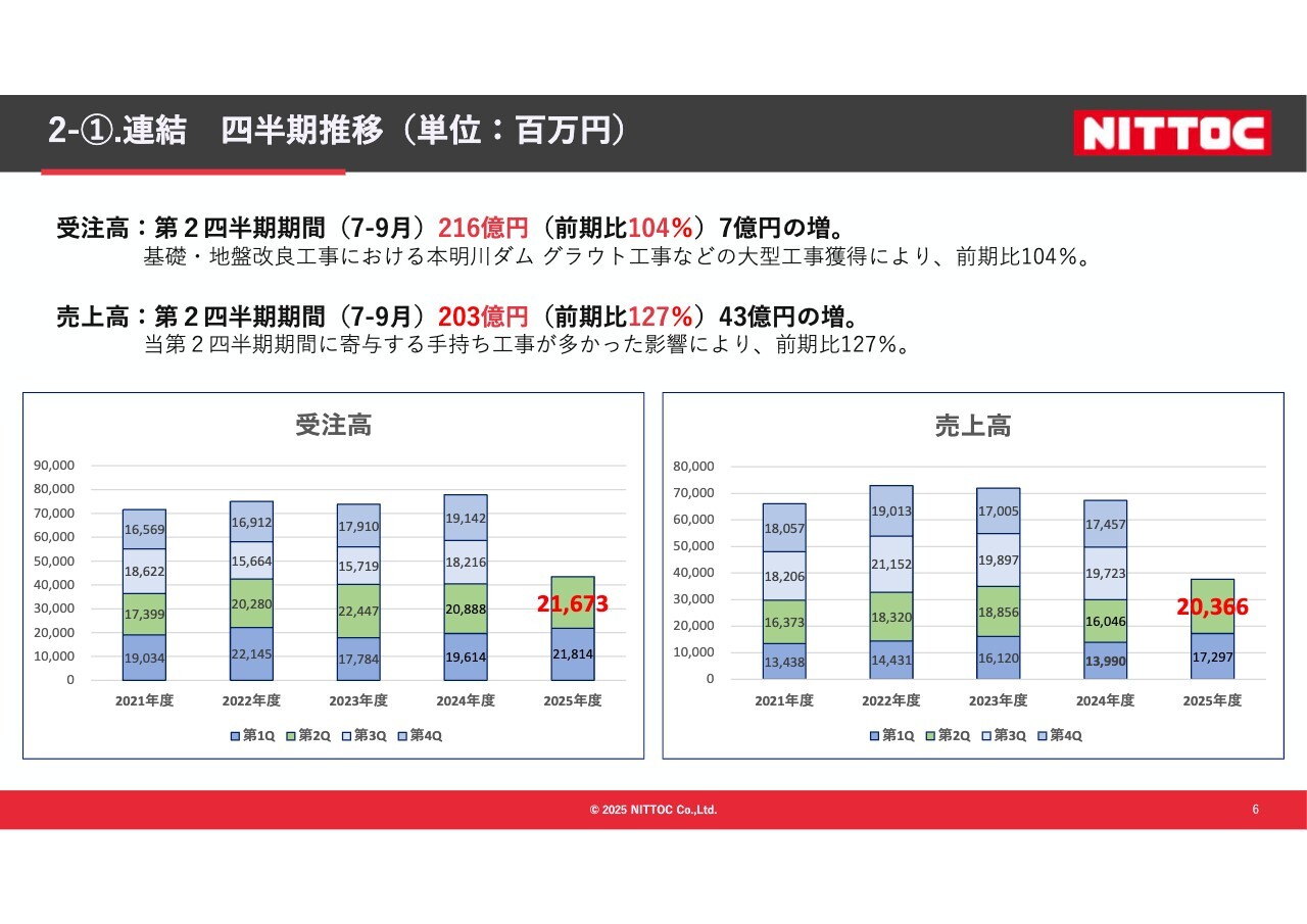 和田康夫氏:日特建設株式会社代表取締役社長の和田です。2026年3月期第2四半期(中間期)の決算説明会に、お忙しい中、時間を割いてご参加いただき、誠にありがとうございます。私から決算概要をご説明します。