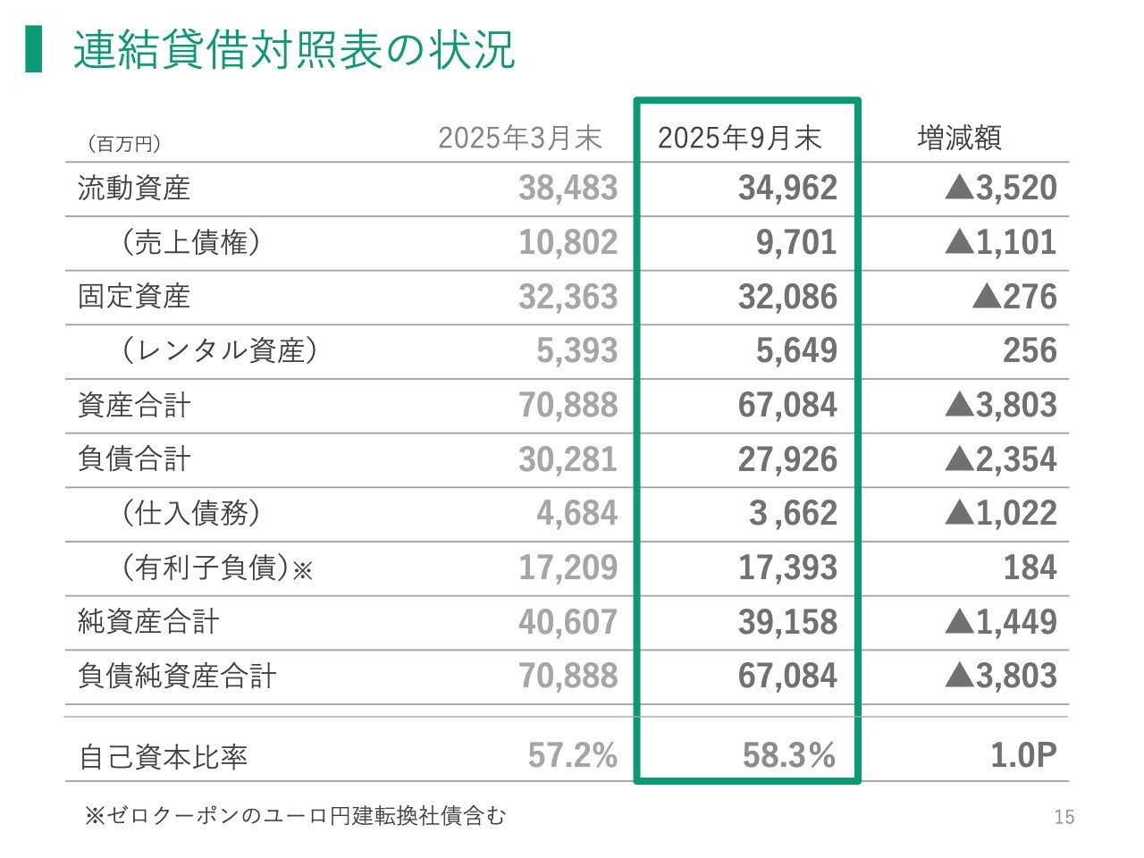また、レンタル資産の増加や有利子負債の増加は、事業成長に向けた戦略的な投資によるものです。