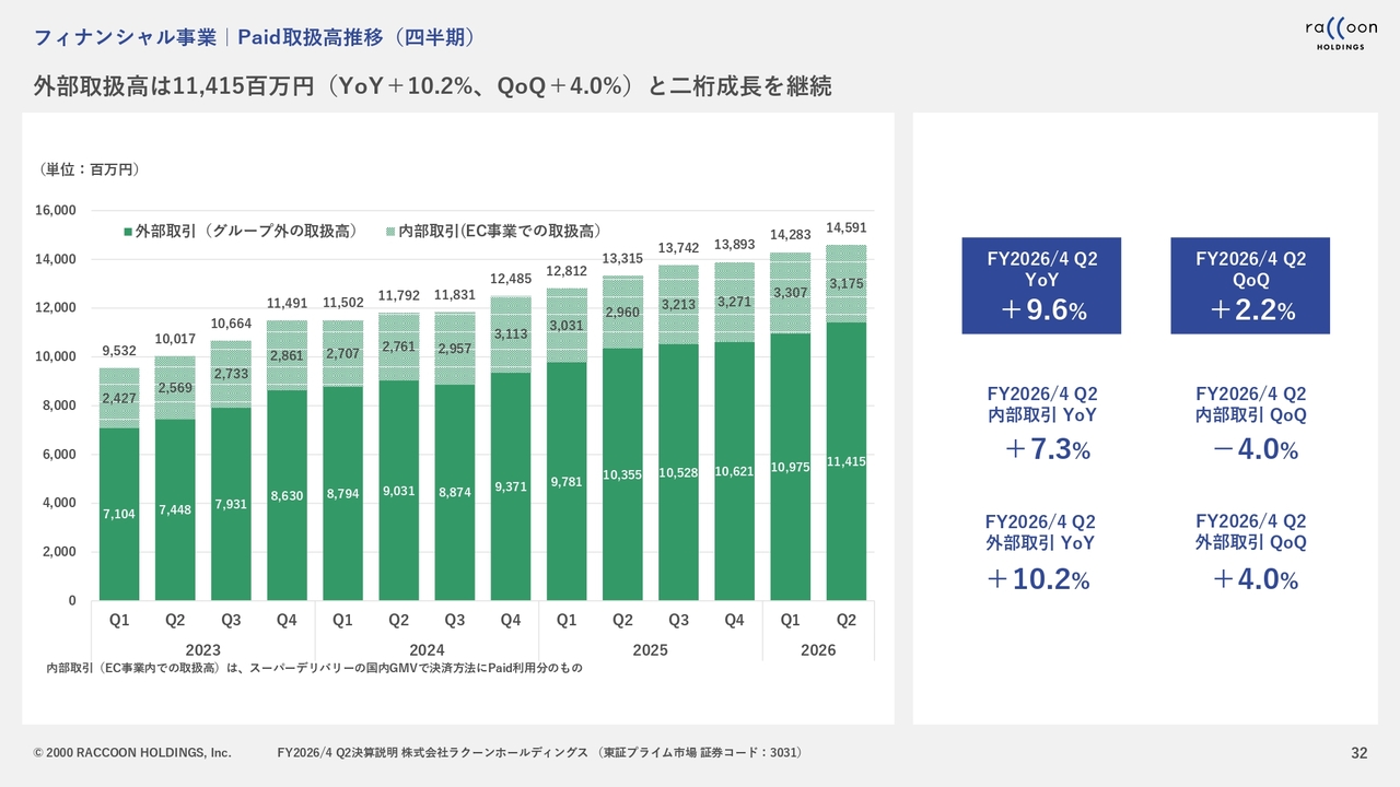 「Paid」取扱高の推移です。外部取扱高については、スライドをご覧ください。