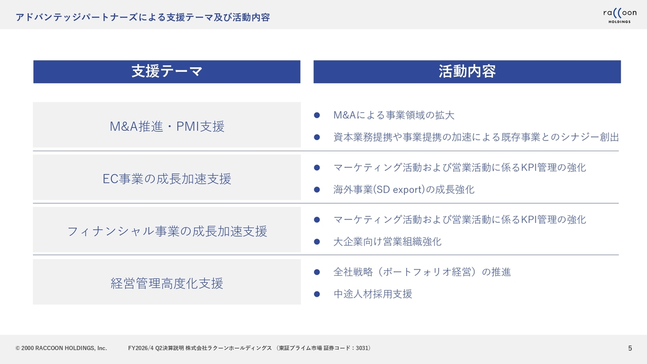 フィナンシャル事業の成長加速支援については、マーケティングや広告、大企業向けの営業組織の強化などが含まれており、我々として非常に期待するポイントです。