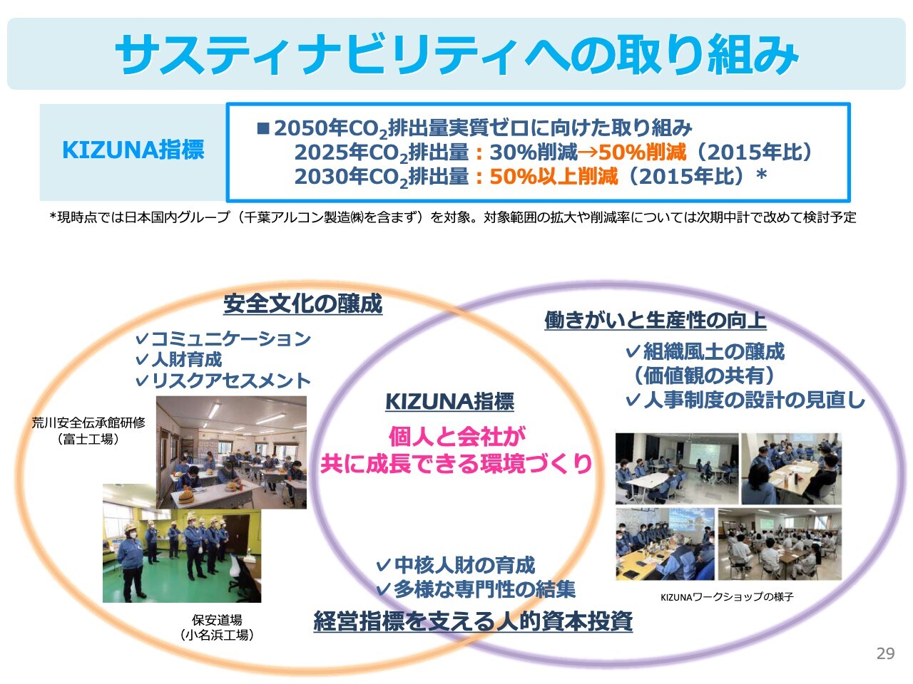 また、働きがい向上の面では、安全文化の醸成、働きがいと生産性の向上、経営戦略を支える人的資本投資などを通じて、個人と会社がともに成長できる環境作りに引き続き取り組んでいきます。