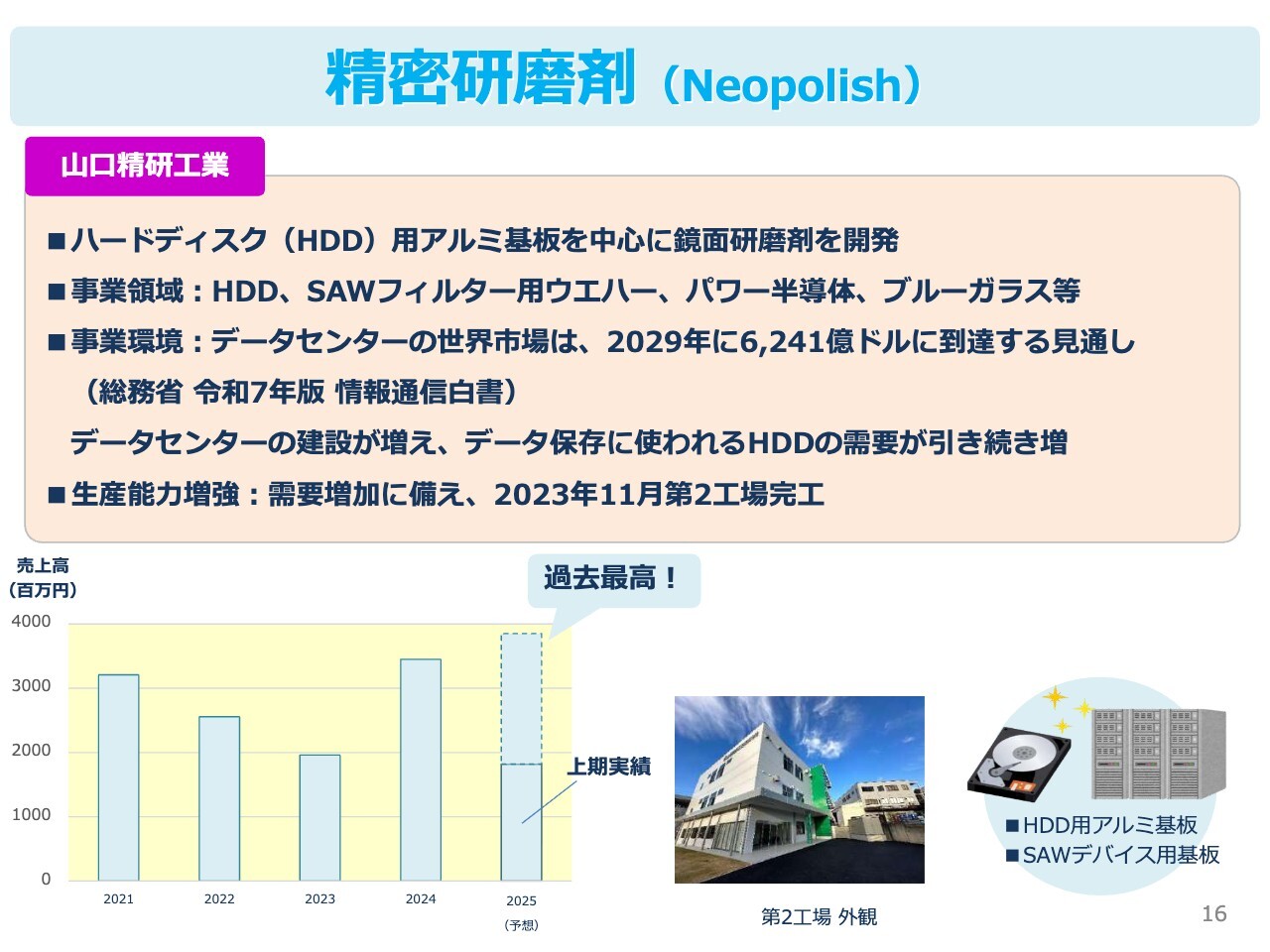 例えば、データセンター向けの精密研磨剤は、スライド16ページにも同様の内容が記載されていますが、それと同じだとすると、一目盛りで約50億円の売上になるのでしょうか? そこまで売上があるのかな? と感じました。