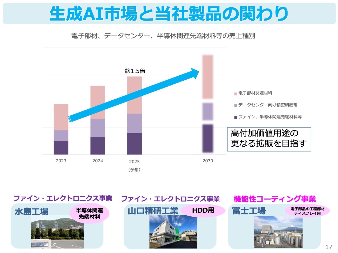 また、精密研磨剤については、スライド16ページに売上が約40億円となっていますが、これも1.4倍程度の需要増に十分対応できるとお考えいただければと思います。