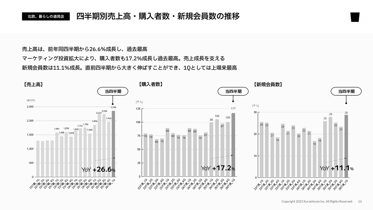 また、新規購入者の獲得についても、上場以来の過去最高水準を達成しており、堅調に顧客基盤を拡大できています。