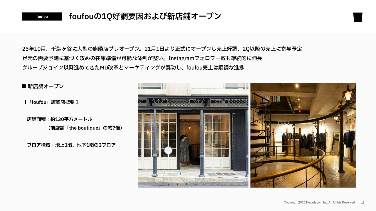 一方、「foufou」は今期は足元の需要が大きかったことを受け、それに合わせて在庫をしっかりと準備することで、売上高の成長に取り組んでいます。その結果、第1四半期で狙いどおり高い成長を実現することができました。