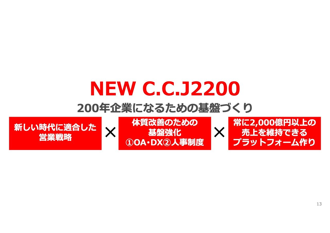 それには戦略の明確化が必要であり、同時に投資も推進していきます。現在は次期中長期経営計画の策定と、「NEW C.C.J2200」の総括を並行して進めているところです。