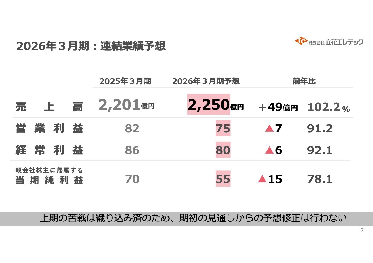 2026年3月期:連結業績予想