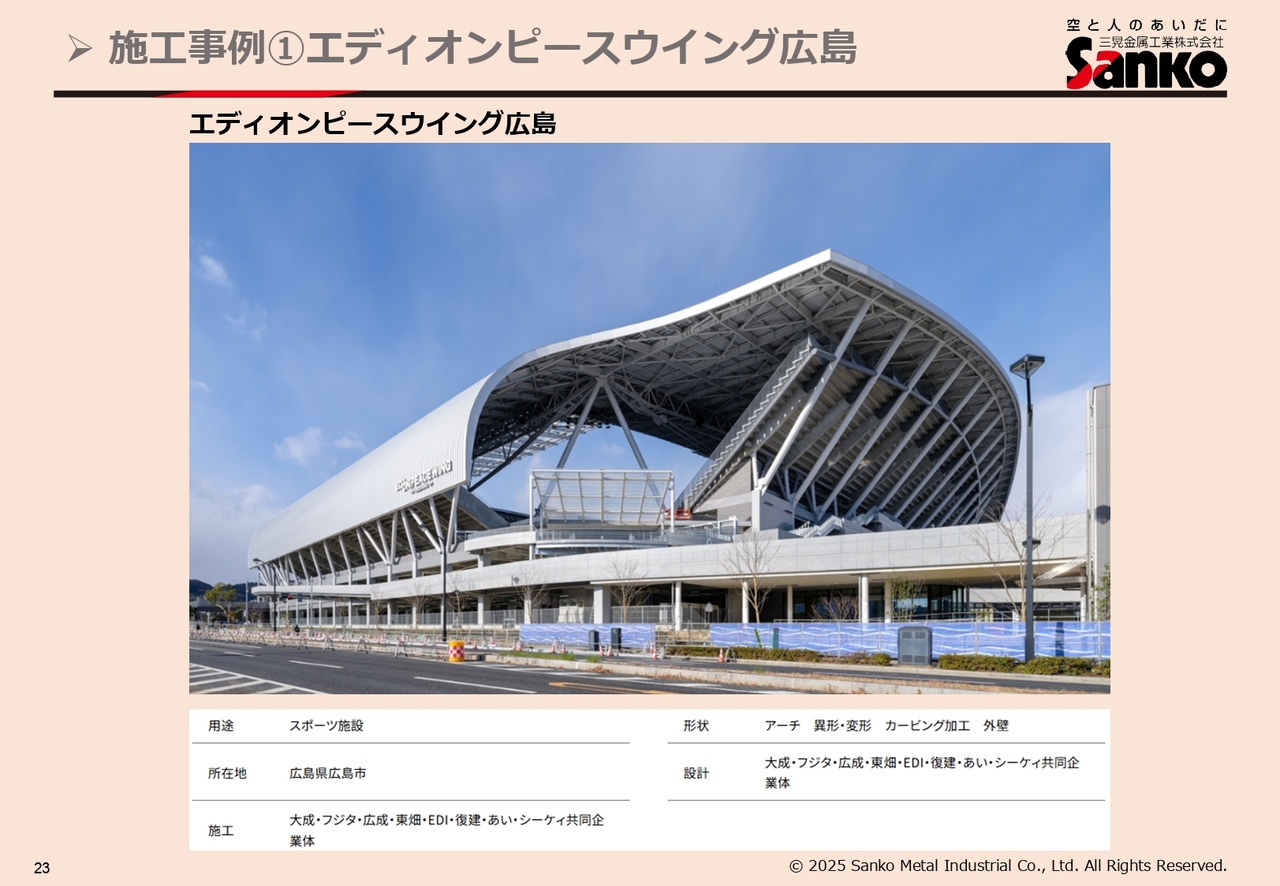 施工事例を5つご紹介します。1つめは、エディオンピースウイング広島です。