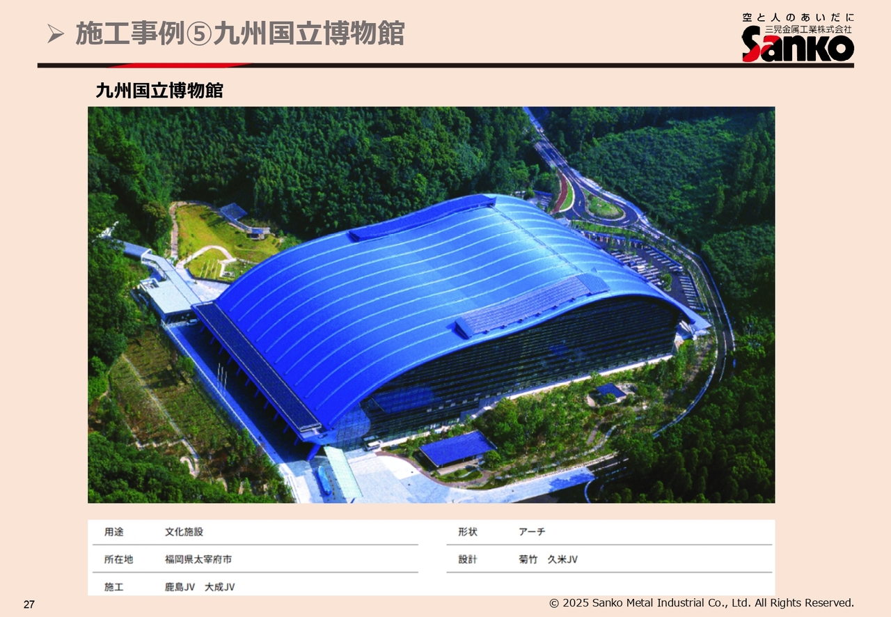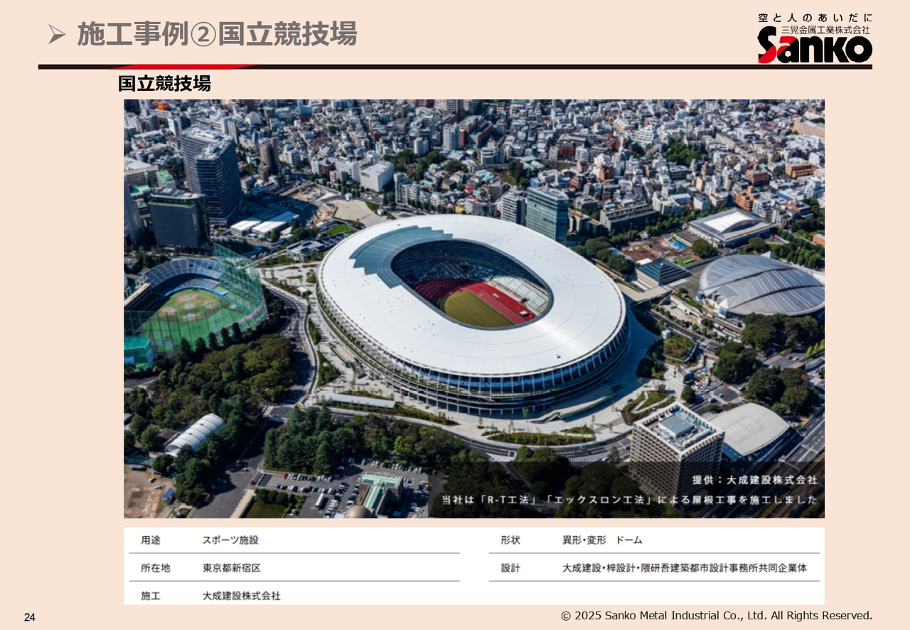 1949年の創業以来、屋根の専門家集団として3つの機能を磨き続け、スタジアム、アリーナ・体育館、空港施設、駅舎、美術館、博物館といった街のランドマークとなる建物から、工場、倉庫、商業施設、集合住宅、戸建て住宅など暮らしに身近な建物までを手掛けてきました。