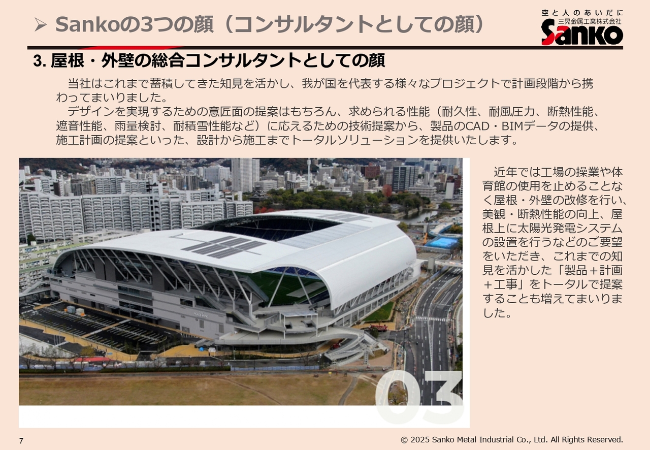 また、当社は「金属屋根メーカー」「屋根専門工事会社」「屋根・外壁の総合コンサルタント」の3つの顔をもっています。
