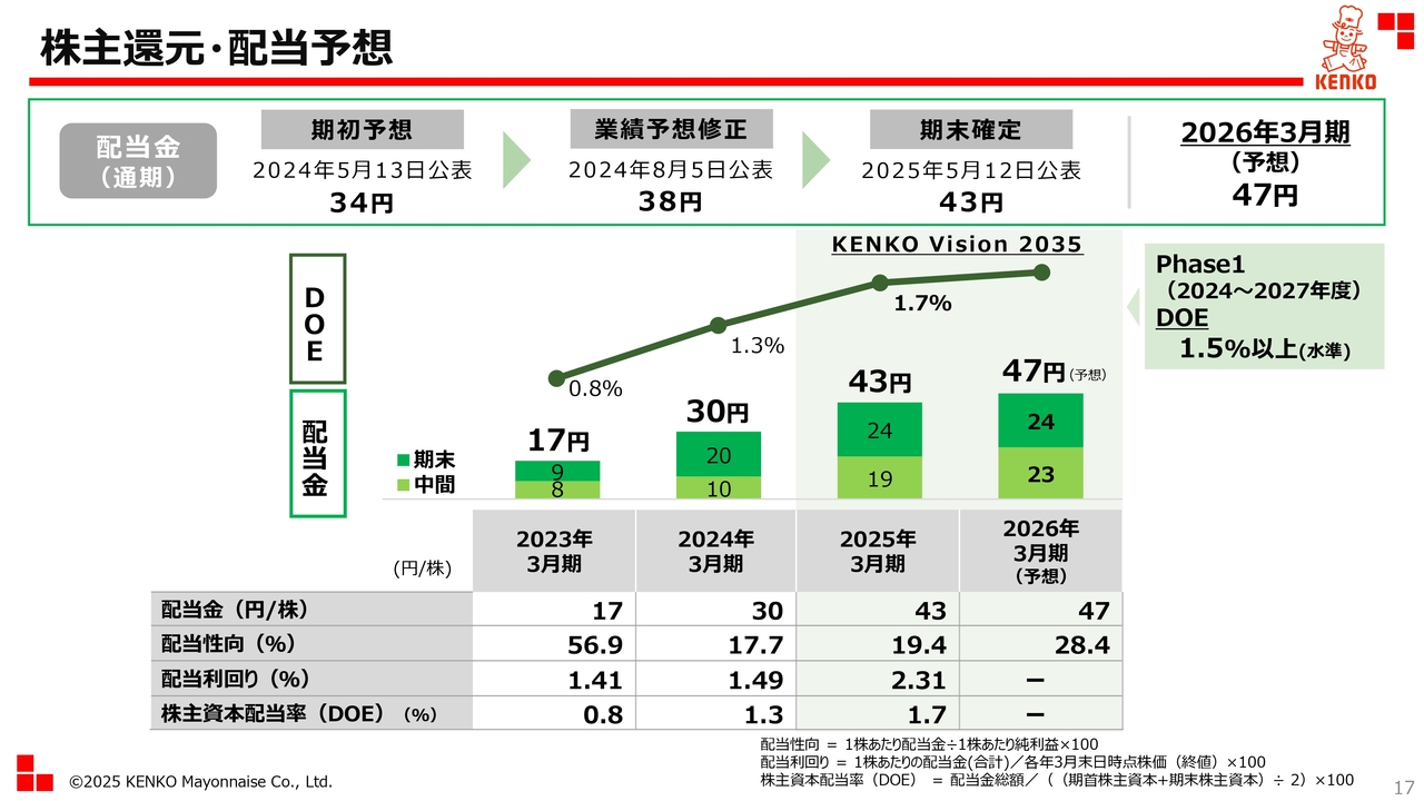 中長期経営計画では、Phase1でDOEを1.5パーセント以上を目指し、Phase2で2パーセント以上という目標につなげていきます。