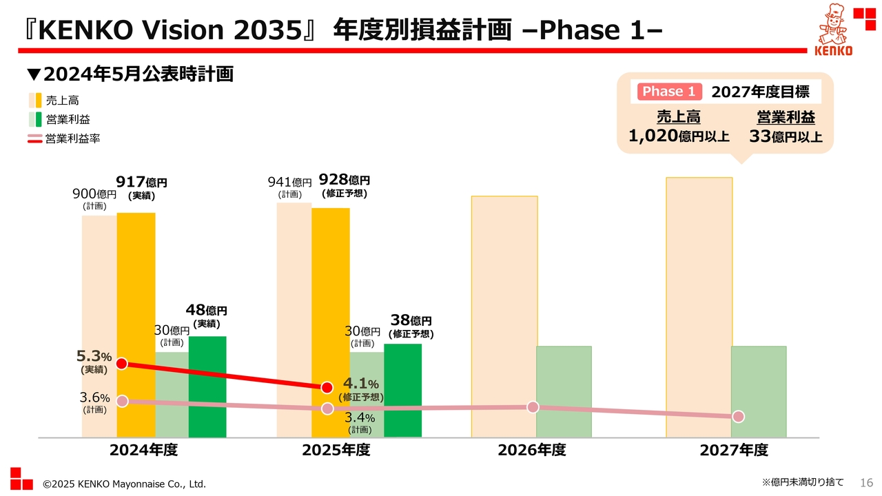 『KENKO Vision 2035』年度別損益計画 –Phase 1–