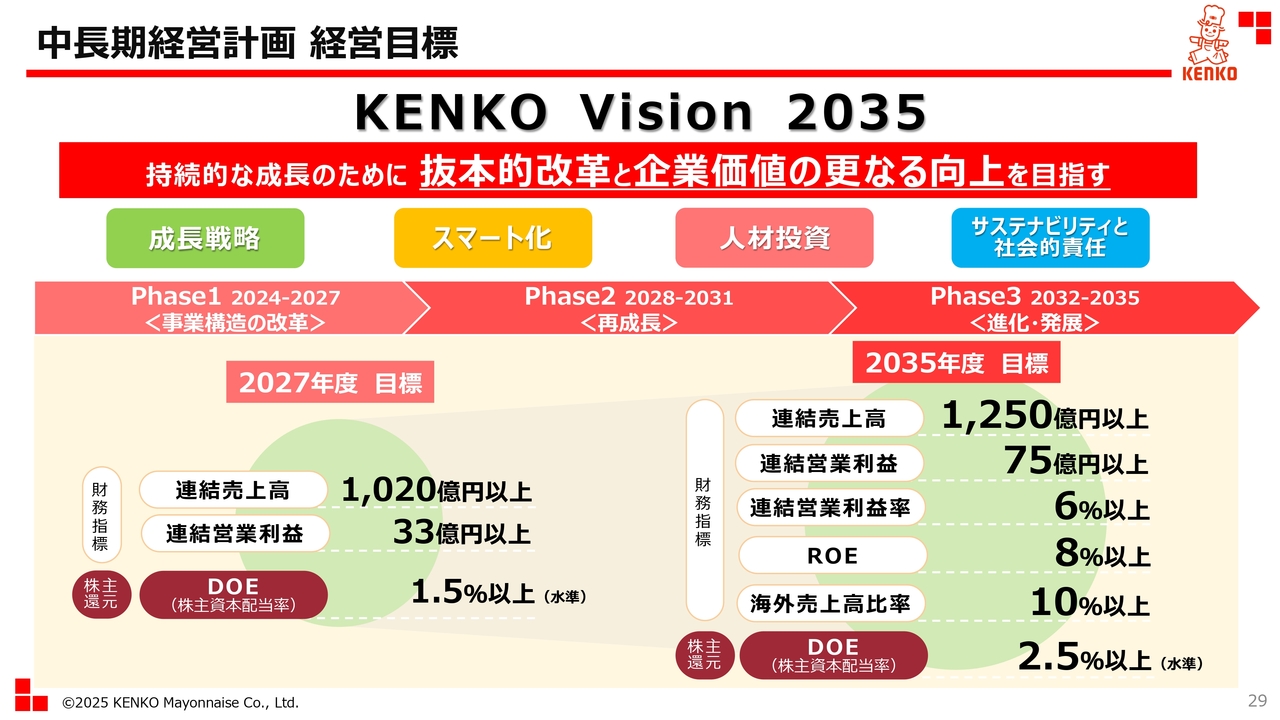 中長期経営計画『KENKO Vision 2035』の進捗についてです。