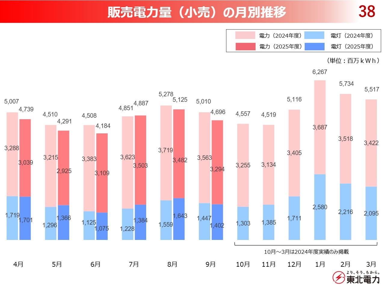 これにより、全体の販売電力量は、前年同期に比べて8億キロワットアワー増の390億キロワットアワーとなりました。