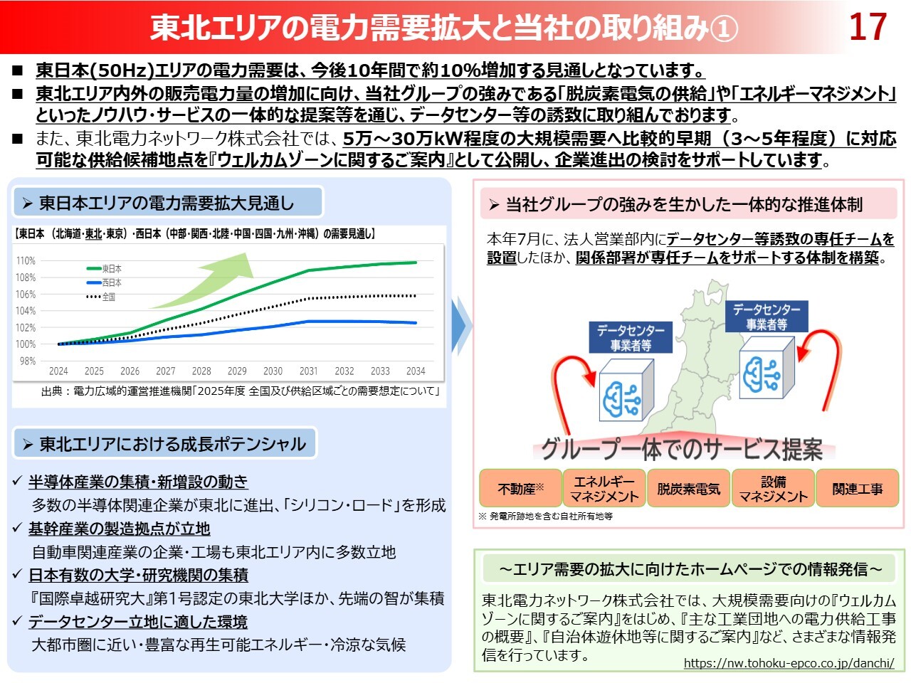 また、当社エリアの電力需要見通しも、データセンター・半導体工場の新増設により、前年想定から上方修正され、今後10年間で3パーセント程度の増加が見込まれています。