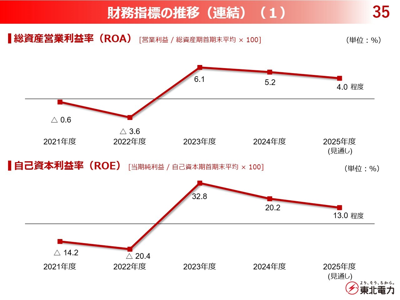 総資産営業利益率(ROA)、自己資本利益率(ROE)の推移は資料のとおりです。
