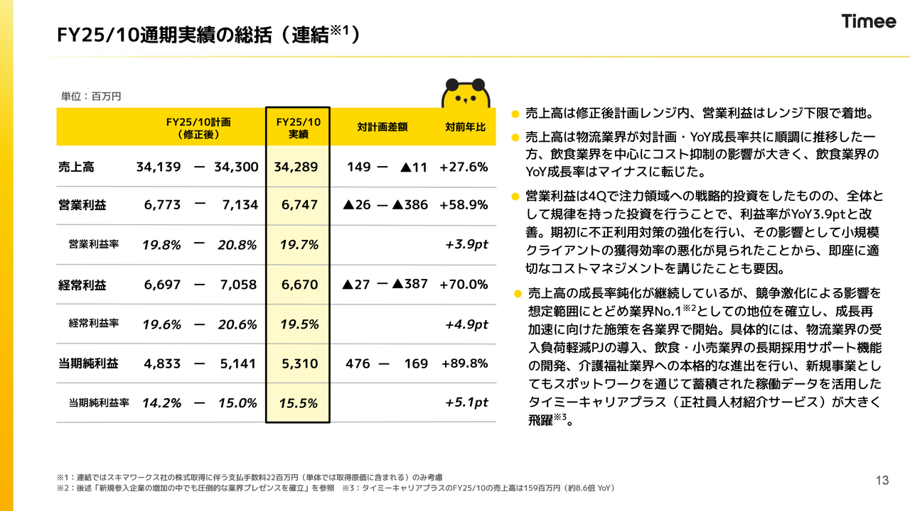 2025年10月期の総括として、売上高については成長率が鈍化した一方で、多くの取り組みが行われた一年だったかと思います。