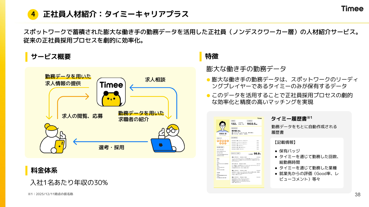 そして、データを活用した事業として、「タイミーキャリアプラス」という新規事業を約1年半から2年ほど展開してきましたが、しっかりと売上が立つ状況になっています。