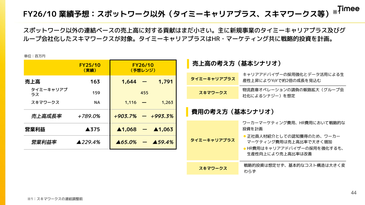 FY26/10 業績予想:スポットワーク以外(タイミーキャリアプラス、スキマワークス等)