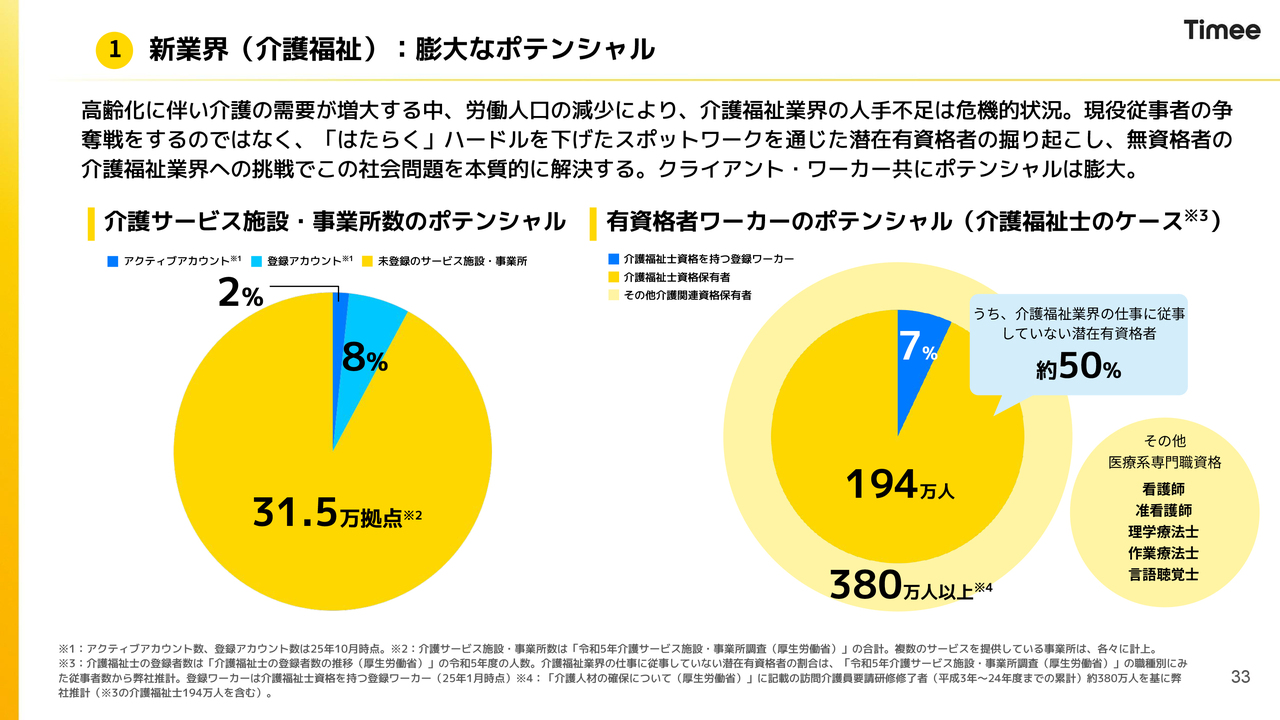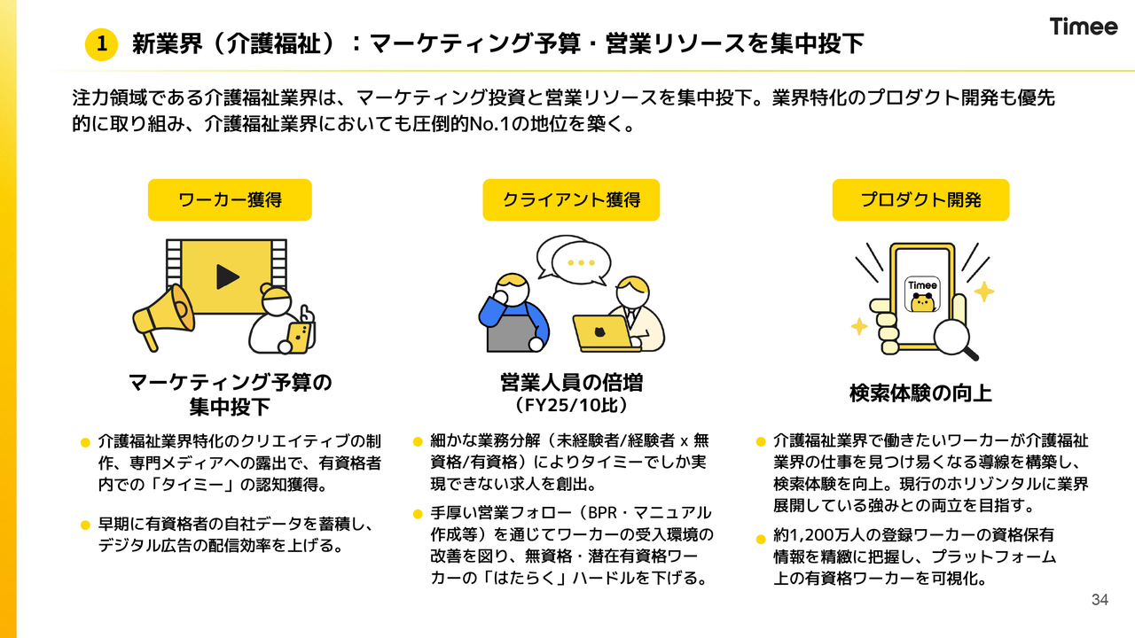 また、介護福祉分野も非常に成長しており、これまでは無資格者のマッチングが多かった状況から、有資格者のマッチングにまで範囲を広げることができ、順調に開拓が進んでいます。