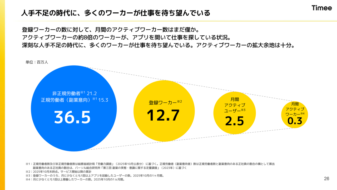 これに合わせて、ワーカーの確保についても、マーケティング活動を積極的に行い、両面での成長を実現することで事業がしっかりと拡大していくということを、これまでのタイミーの経験から確信を持っています。