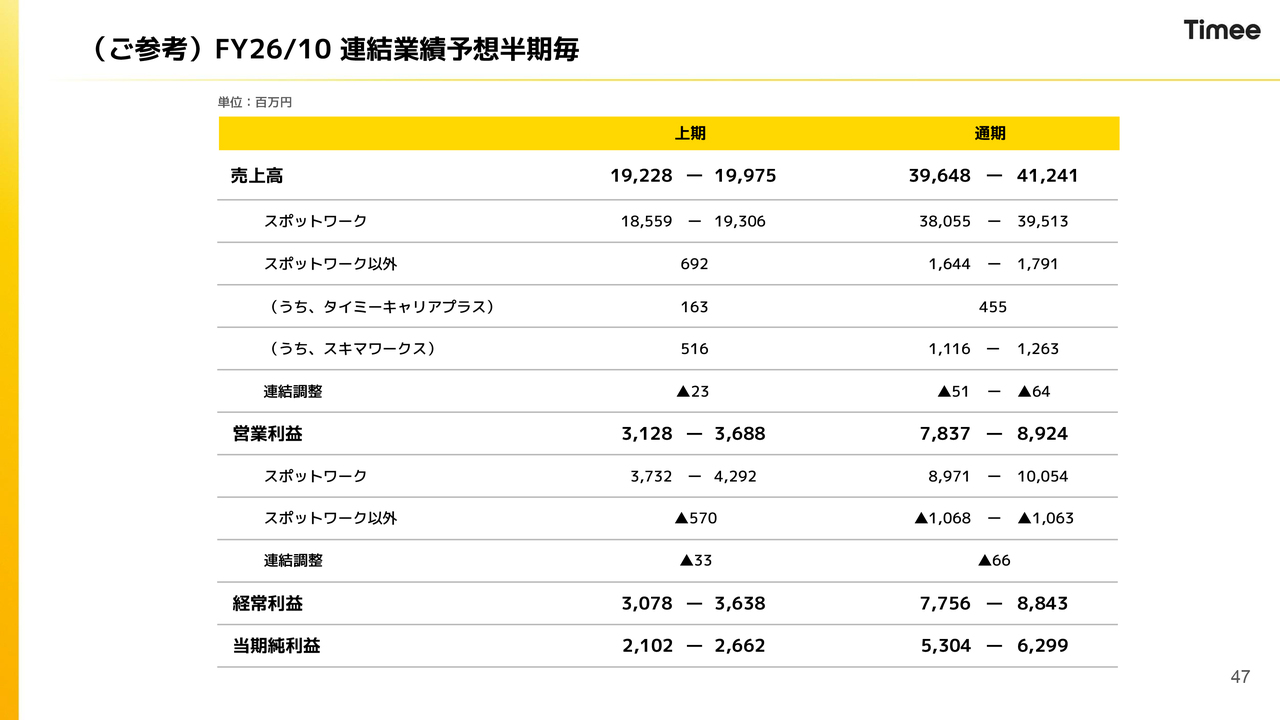 そのため、スポットワークについては利益をしっかり出しながら、戦略的な投資に振り向けるというイメージで捉えていただければと思います。