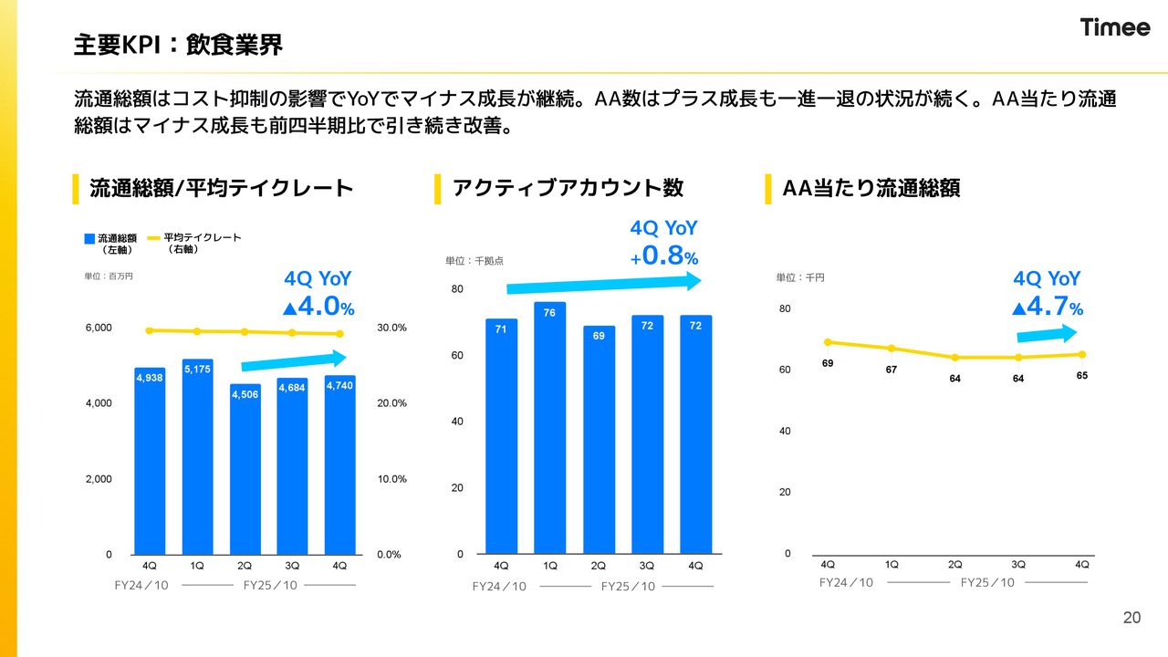 八木:第4四半期の平均テイクレートについては、一部に下がっている部分があります。その要因としては、一部の業界や大手顧客において、キャンペーンを実施したことが挙げられます。