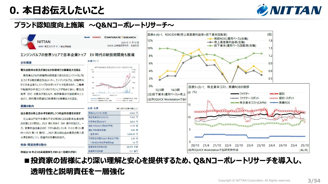 このレポートでは、第三者の視点から当社を冷静に分析し、これまで十分に説明しきれなかったROICやWACCなどの資本効率指標についても、わかりやすく整理されています。