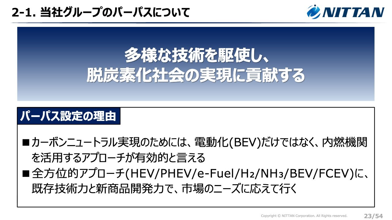 パーパスにもあるとおり、当社は多様な技術を駆使し、モビリティ業界のカーボンニュートラル実現に取り組んでいます。