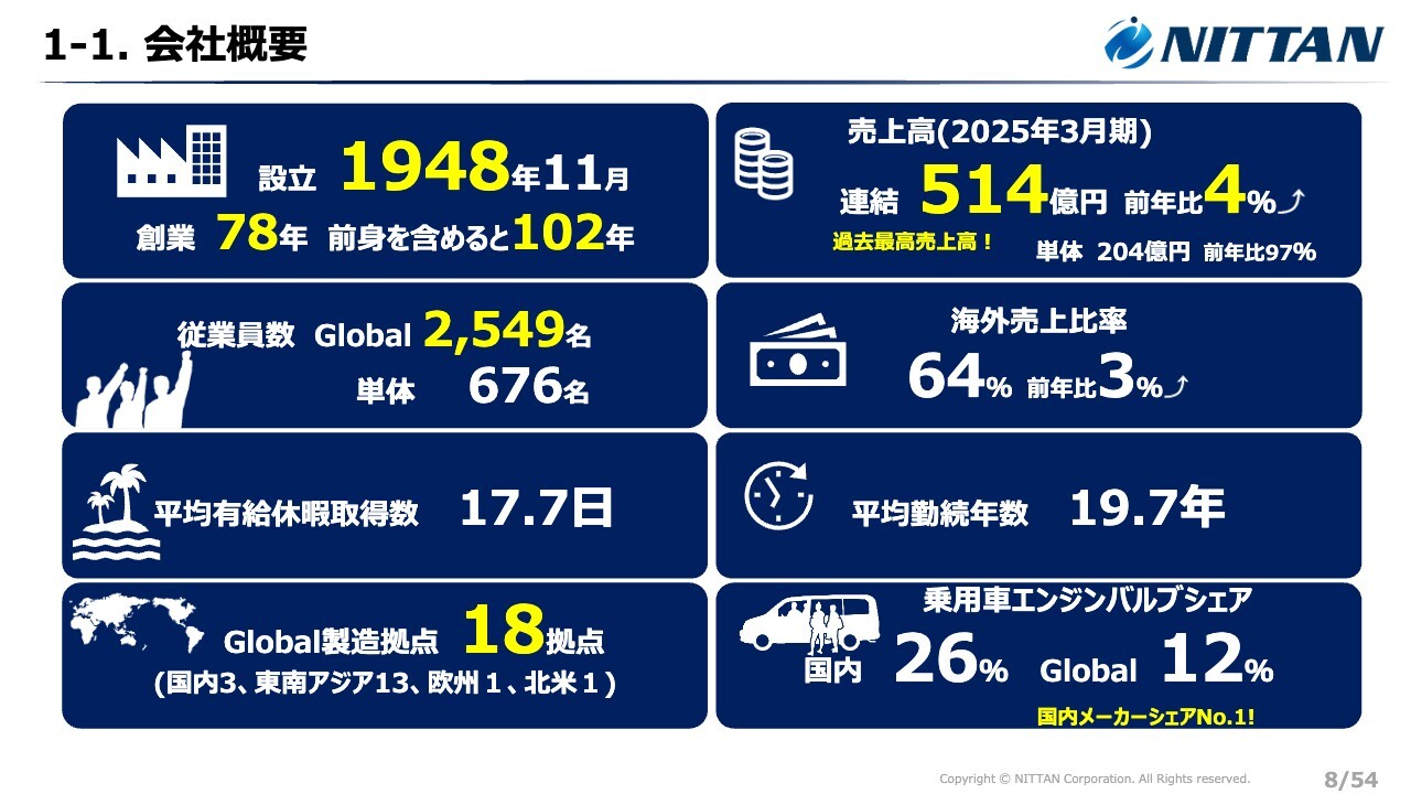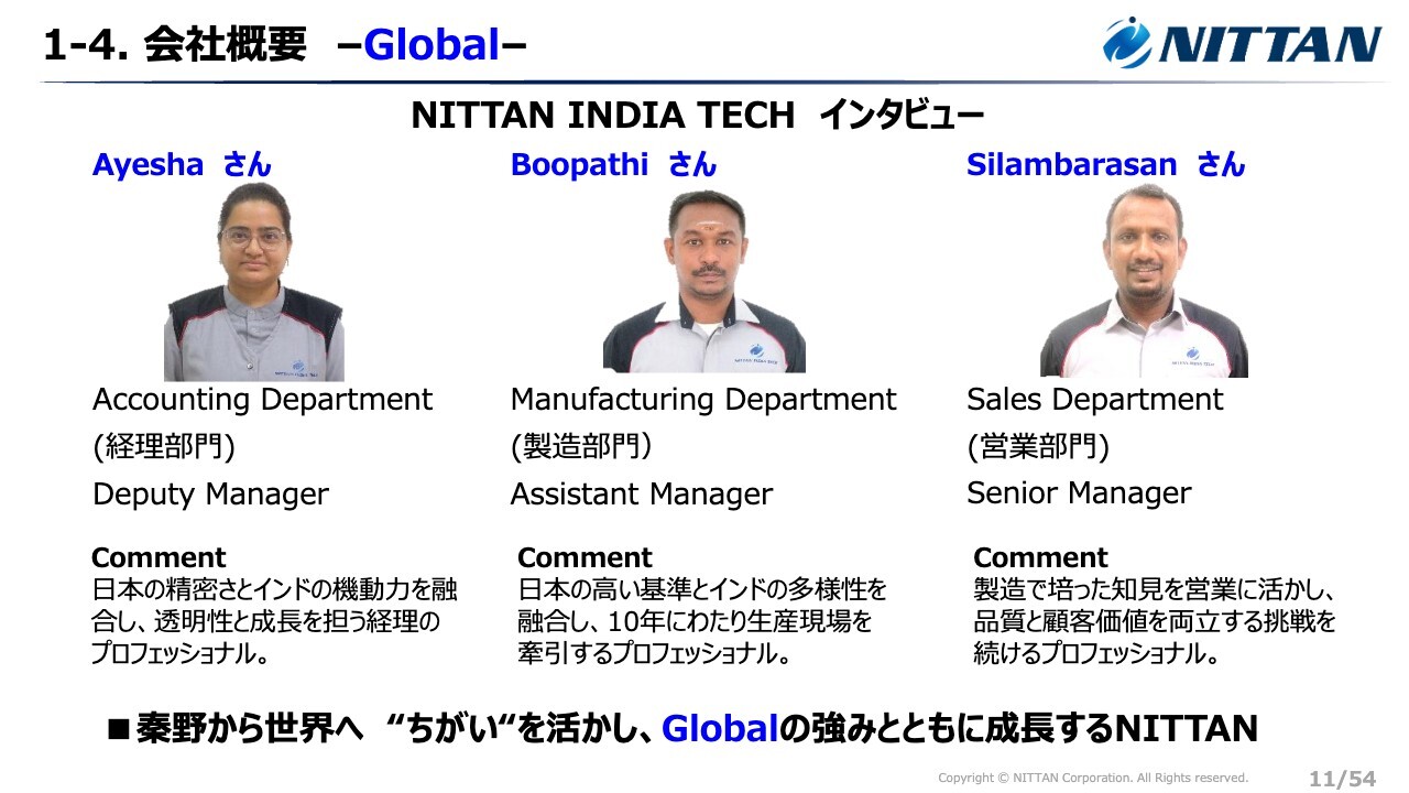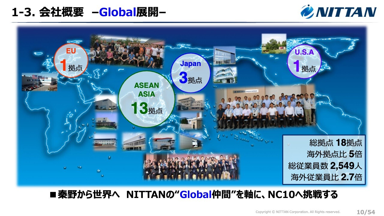 また、タイ、中国、ポーランド、インド、ベトナムなどに拠点を設け、グローバルな成長基盤を築いてきました。2022年には社名を株式会社NITTANへ変更し、昨年にはM&Aも成功させ、さらなる飛躍を目指しています。