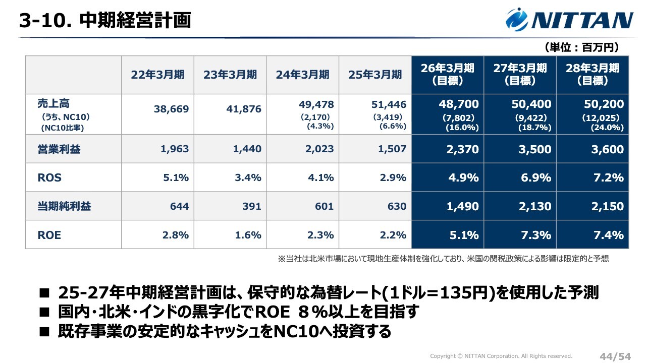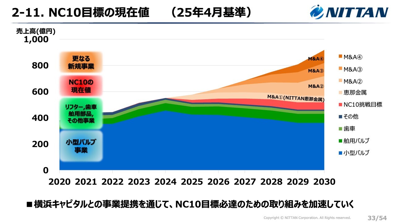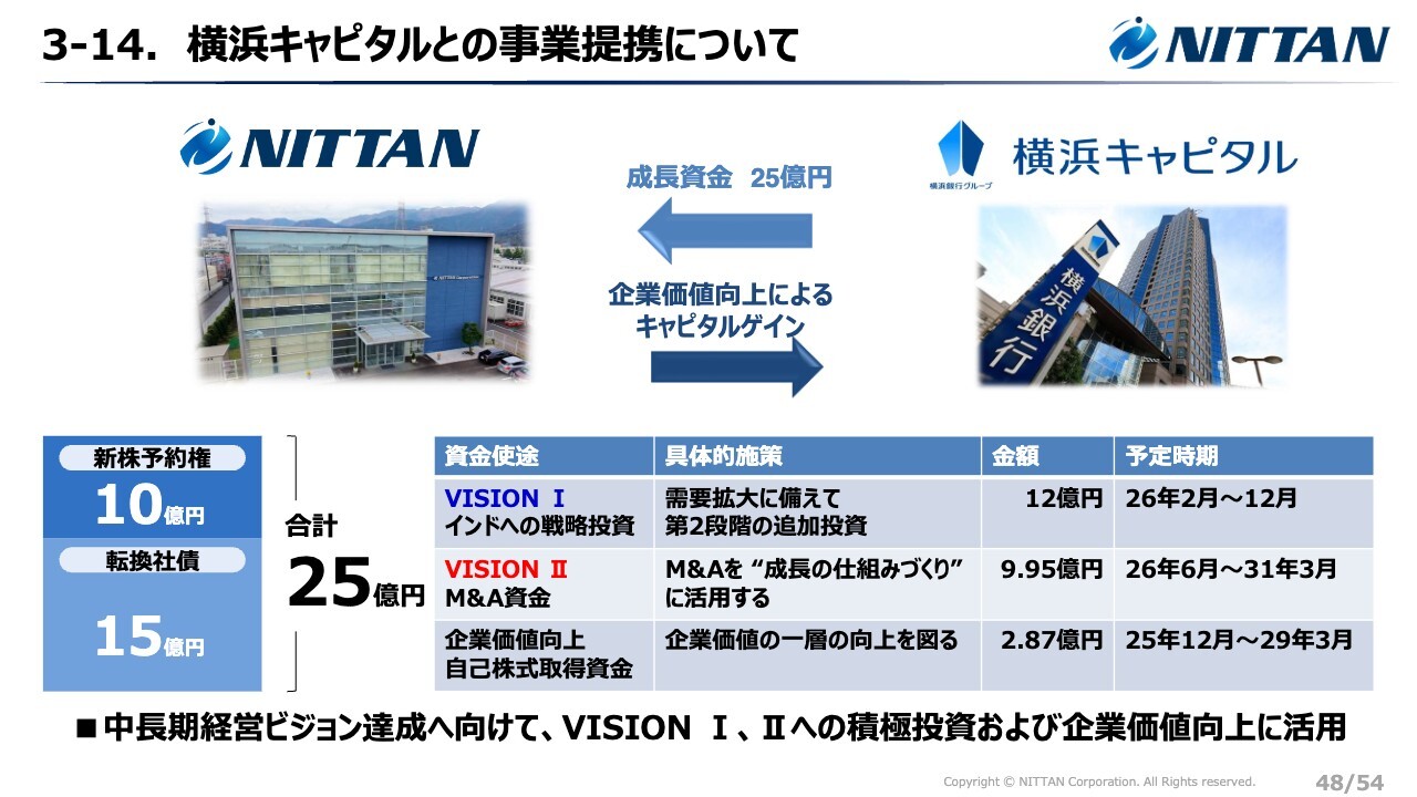 11月28日に開示しましたが、当社のメインバンクである横浜銀行グループの横浜キャピタルとの事業提携についてお話しします。この取り組みは、当社の中長期経営ビジョン「NITTAN Challenge 10」、略して「NC10」の実現に向けた強化策でもあります。