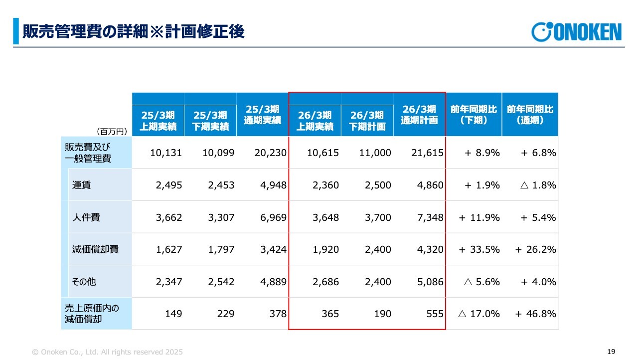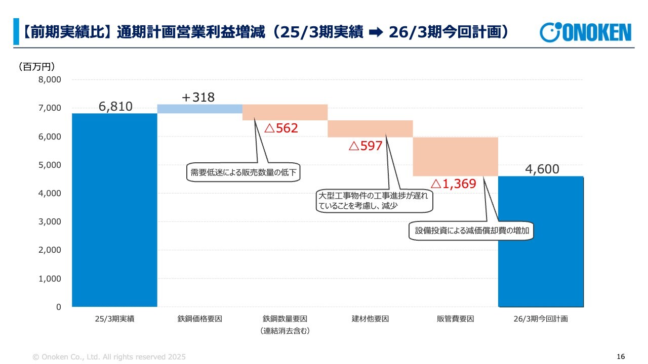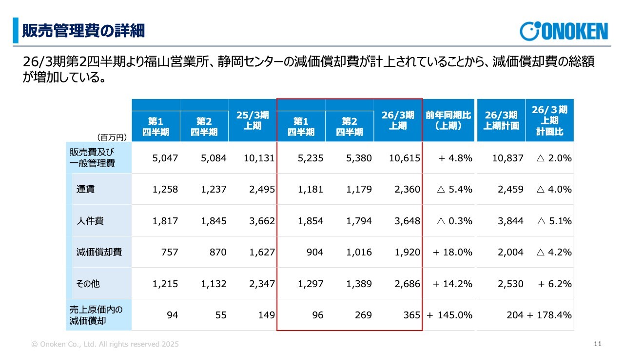 前期実績比についても、設備投資に伴う減価償却費の増加が大きく影響しており、前期比でもマイナス要因として大きく取り上げられると考えています。